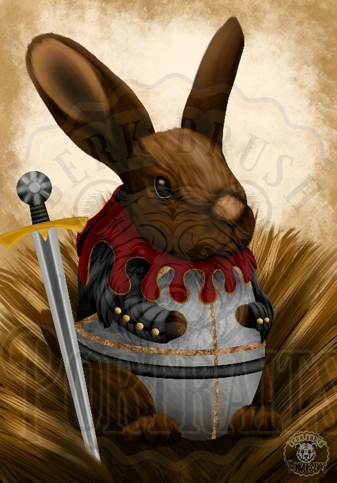 An art piece inspired by the popular game of Kingdom come deliverance. An adorable bunny rabbit dressed as the main character of the story. If you are a fan of the game or would like to have a painting inspired by the Medieval era, or you find small little bunnies adorable, this is the painting for you.